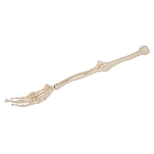 The arm skeleton model is wire mounted, naturally flexible through wrist. Slightly flexible through fingers. Flexible elbow joint.