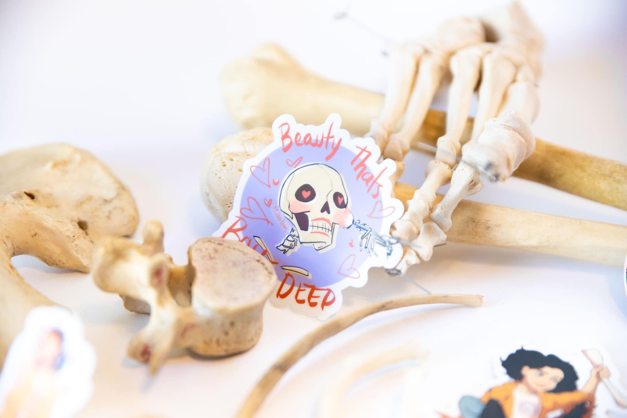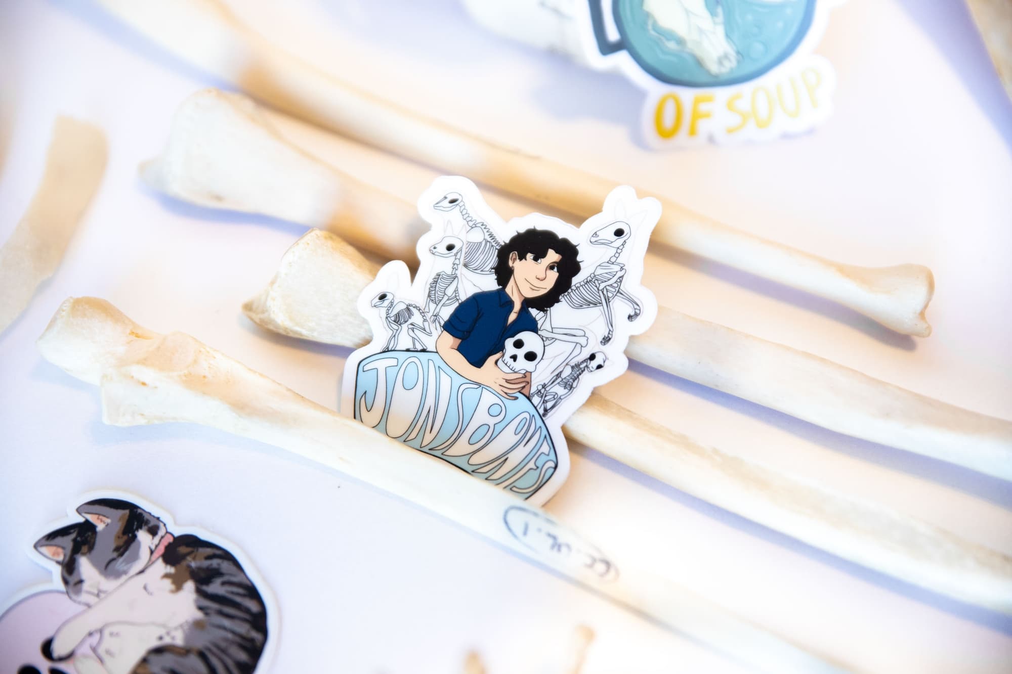 By popular demand, our archive legacy sticker designs are back! This series of stickers was created to start conversations about bones in an approachable and fun manner. Every purchase will result in a randomly selected sticker to add to your collection. Possible stickers include Chonk, Mestid and Derr, Bone Deep, Father and Son, My Kind Of Soup, Rolling With The Crew, Jon And Chonk, and the Original JonsBones Logo. Every order has the possibility to contain a rare Holographic Chonk or Holographic Jon and Chonk Sticker. Every purchase has a 1 in 10 chance of resulting in a holographic sticker. Who doesn’t love a surprise?